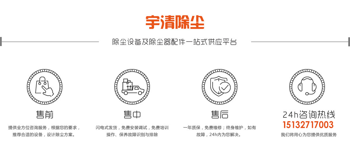 宇清除塵設(shè)備有限公司擁有多年布袋除塵器及配件的生產(chǎn)經(jīng)驗(yàn),公司擁有好的生產(chǎn)設(shè)備,標(biāo)準(zhǔn)化的生產(chǎn)工廠, 以“實(shí)體生產(chǎn),保證貨源,售后無(wú)憂(yōu)”的經(jīng)營(yíng)理念服務(wù)廣大客戶(hù)。